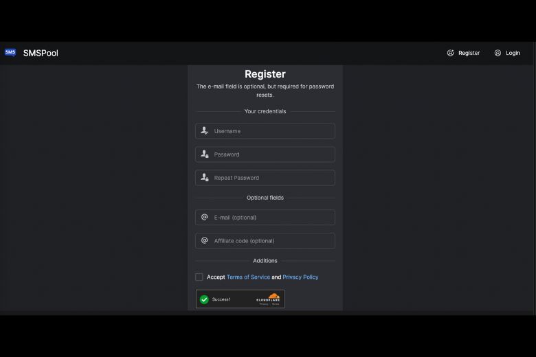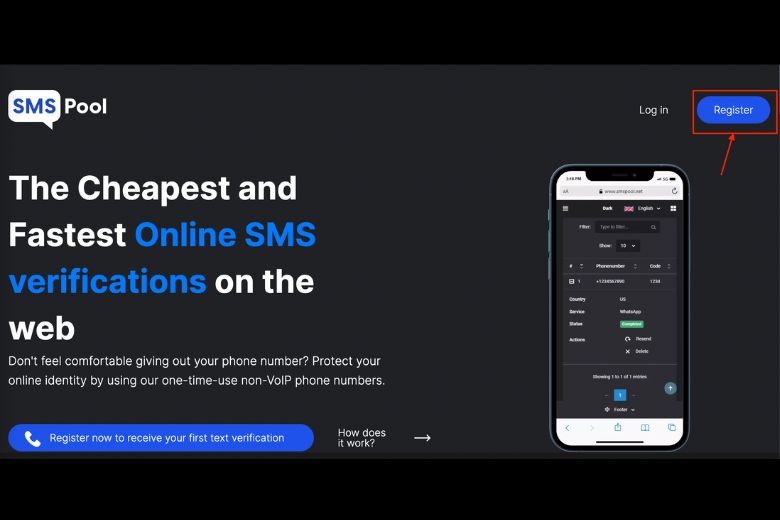 Bước 1: Đầu tiên, bạn cần phải đăng ký tài khoản smspool bằng cách truy cập tại đường link https://www.smspool.net/.