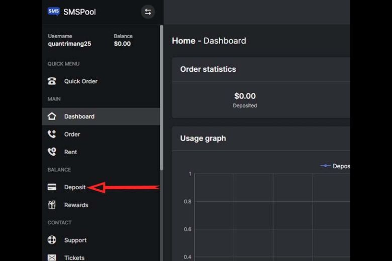 Các bước mua số điện thoại USA ảo trên Smspool bước 1